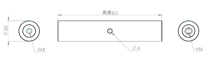 - 下端為M6、上端為M4安裝螺紋孔;