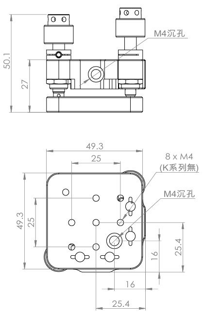 | OPT-B1 | 檯面尺寸 49.3 x 49.3 mm, 無螺紋 |