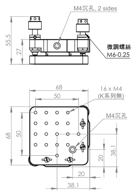 | OPT-B2 | 檯面尺寸 68 x 68 mm, 無螺紋 |