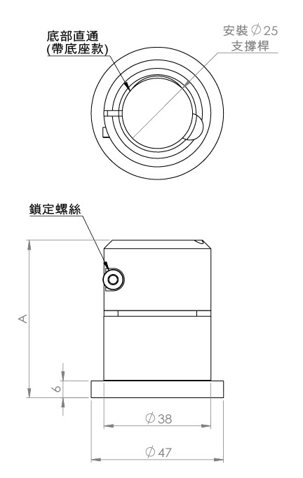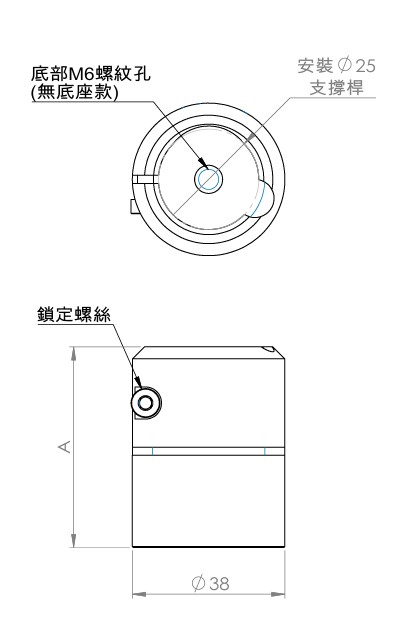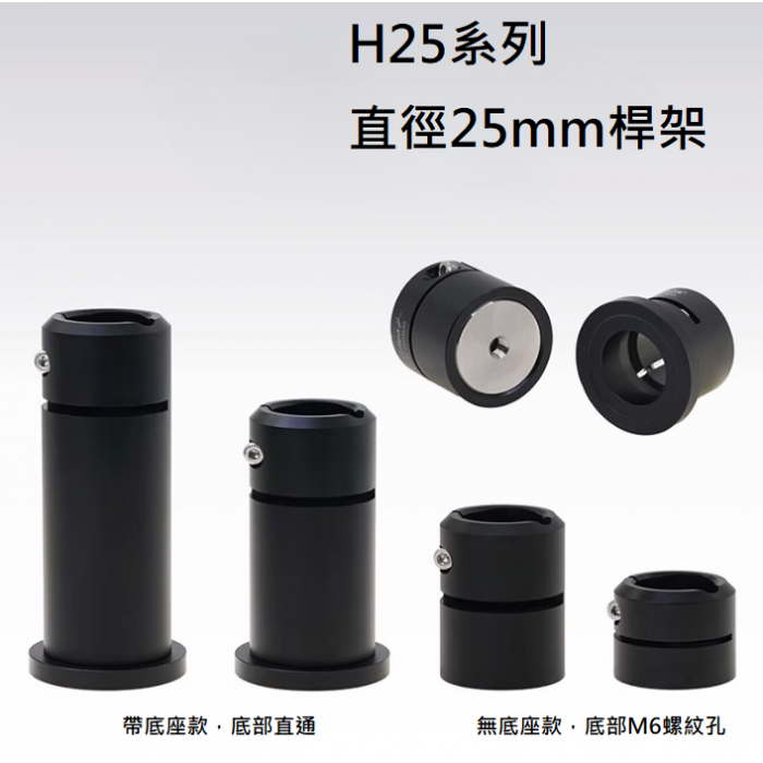 - 材質:鋁合金表面黑色陽極處理,用於固定直徑25mm支撐桿;