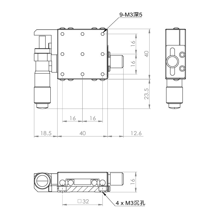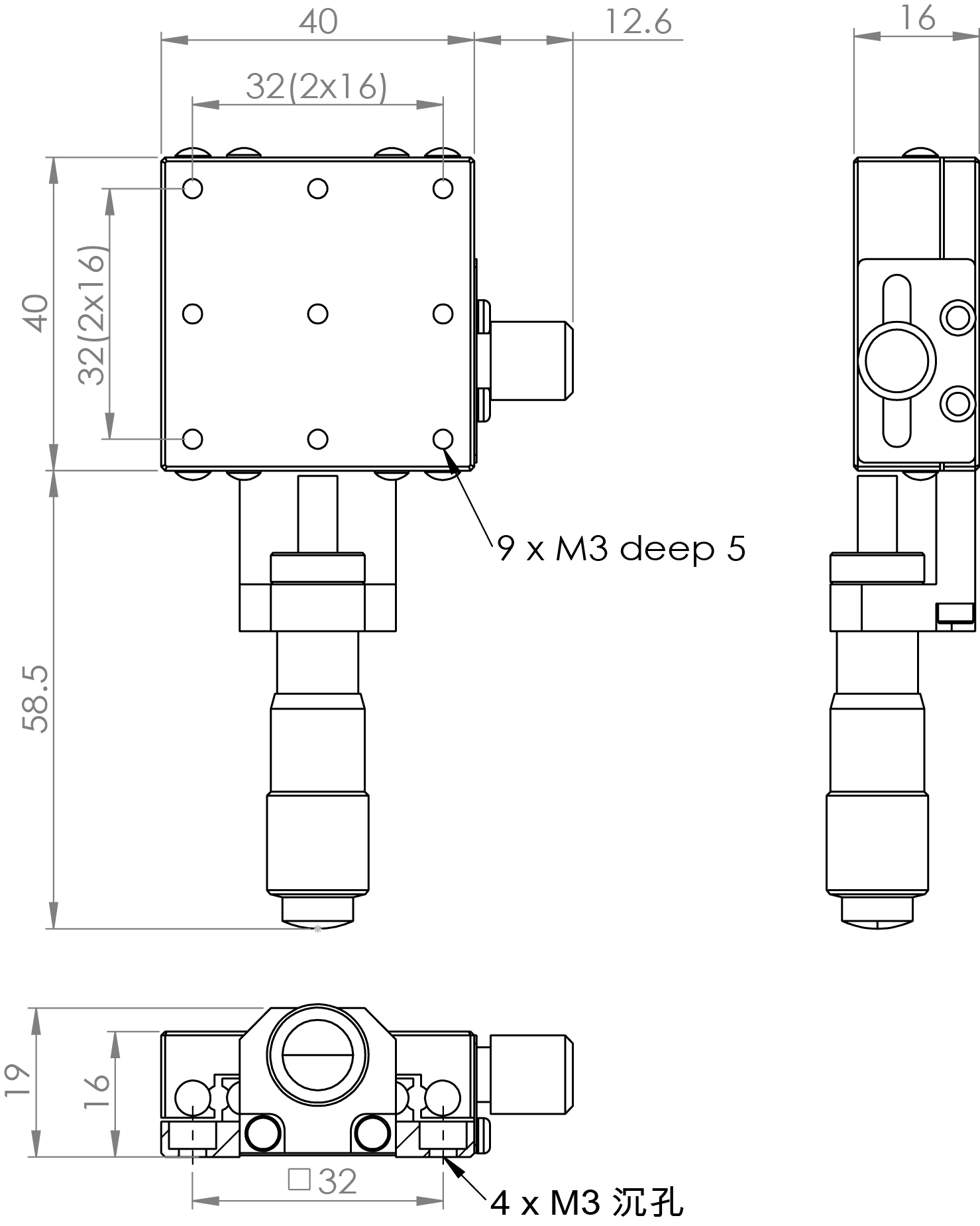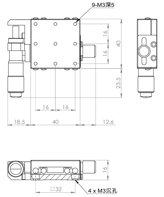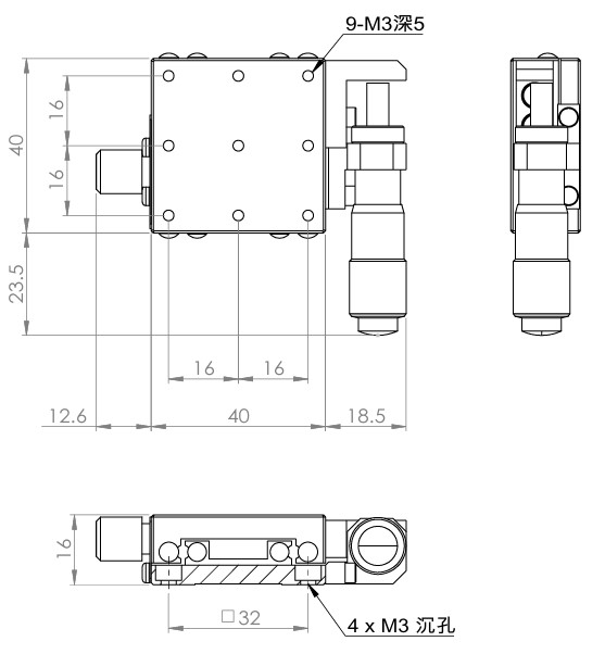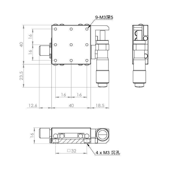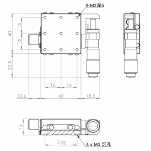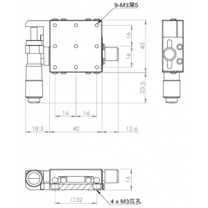 材質:SUS440C不鏽鋼,表面鍍無電解鎳 檯面尺寸:40 x 40 mm 厚度:15 mm 行程:13 mm 驅動方式:分厘卡頭 讀取精度:0.01mm 荷重:10 kgf 重量:0.23 kg 型號: STS40AC 分厘卡頭位在中心 STS40AL 分厘卡頭位在左側 STS40AR 分厘卡頭位在右側