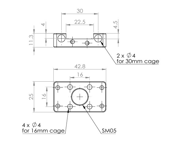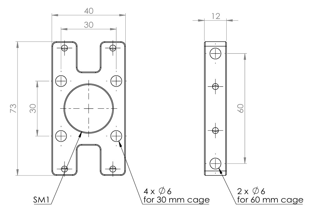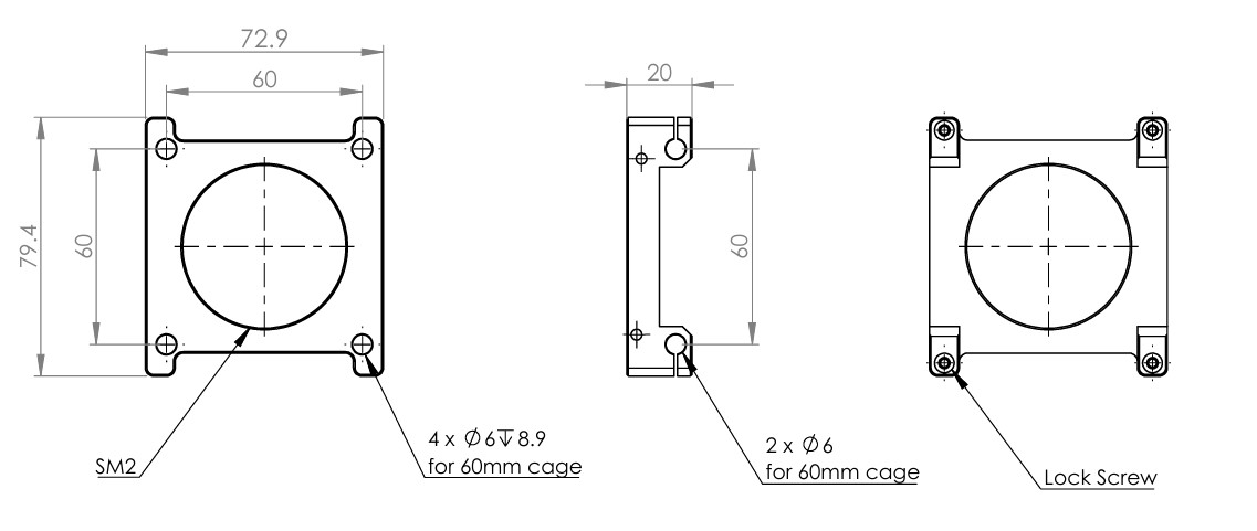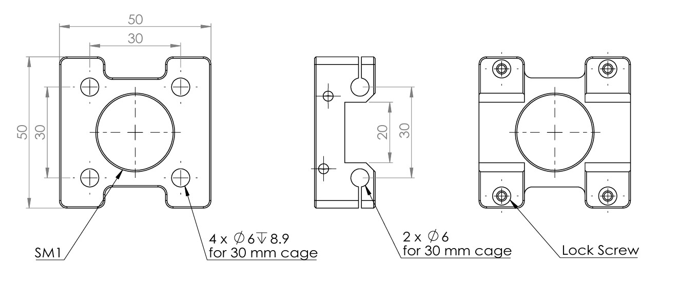 • 中心SM系列內螺紋孔,可安裝鏡片或鏡筒;