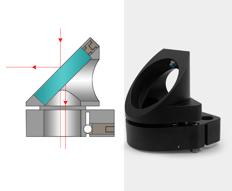 光束以45度入射角通過分光鏡會依鏡片的厚度與折射率產生橫向偏移,可搭配相同厚度與材質的鏡片補償偏移或是搭配籠式系統橫向位移籠板補償: