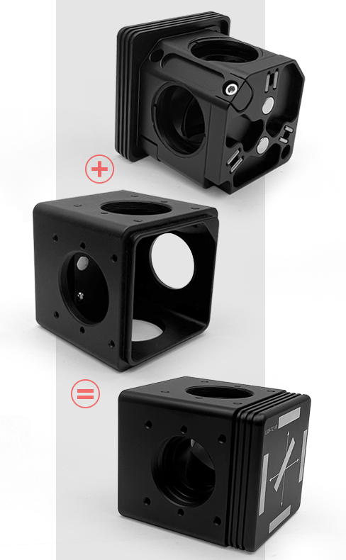- 用於固定螢光濾光片組的 30 mm 籠式立方體;