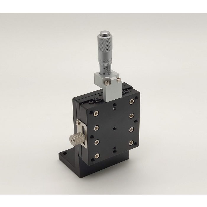 垂直升降,防墜設計 材質:鋁合金黑色陽極處理 檯面尺寸:50 x 50mm 行程:13 mm 驅動方式:分厘卡頭 讀取精度:0.01 mm 偏移量:10 µm 荷重:2 kgf 重量:0.22 kg 選配:-P:高精度分厘卡頭(0.25mm per round) 型號: STV50AC 分厘卡頭位在中心 STV50AL 分厘卡頭位在左側 STV50AR 分厘卡頭位在右側