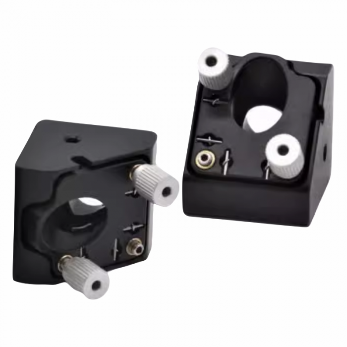 斜面帶三個M3-0.25微調螺絲,可微調±3º俯仰和偏擺角度,三軸同時微調可以有±1 mm線性位移,補償光束偏移。