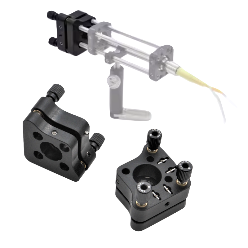 同時調整三個精密微調螺絲,可使鏡片沿著同軸系統中心軸前後移動,位移行程為±1 mm。