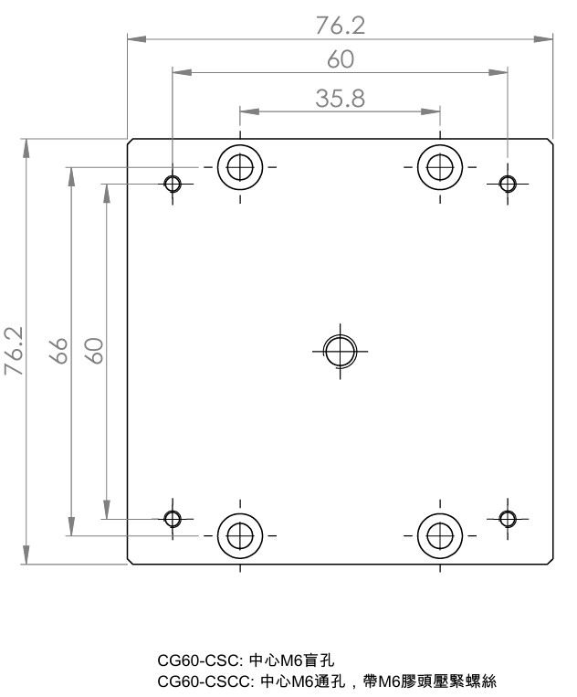 | CG60-CSM | 4面帶公制M3螺紋孔 |
