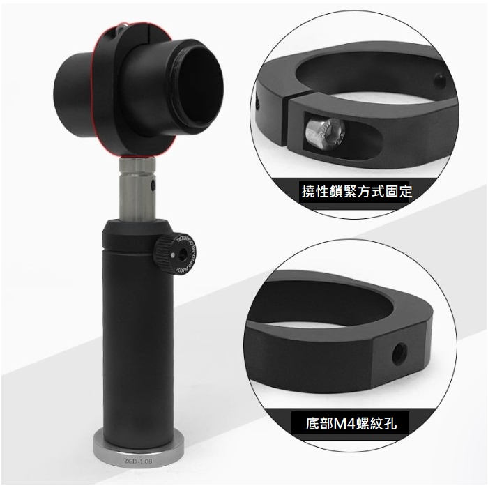 有多種規格可選,底部M4螺紋孔,可固定在支撐桿上;